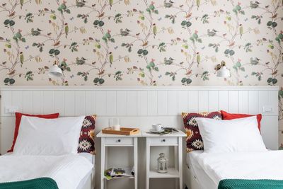 Гостям предлагаются мягкий халат и тапочки. Домашний уют в номере также создаёт текстиль из натуральных материалов – постельное бельё, плед, подушки, шторы.